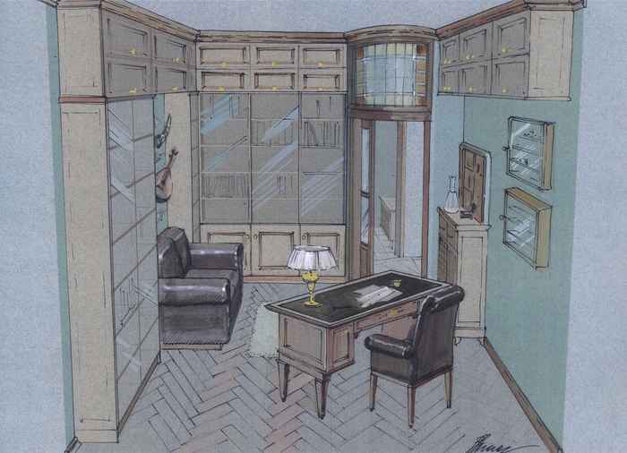 Вид №244. Интерьер кухни нарисовать карандашом - интерьер детской с лоджией